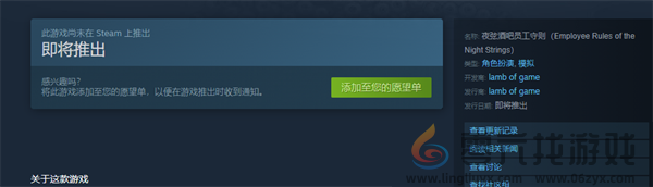 夜弦酒吧员工守则中游戏在steam平台的发售状态是即将推出,具体的发售时间尚未明确。